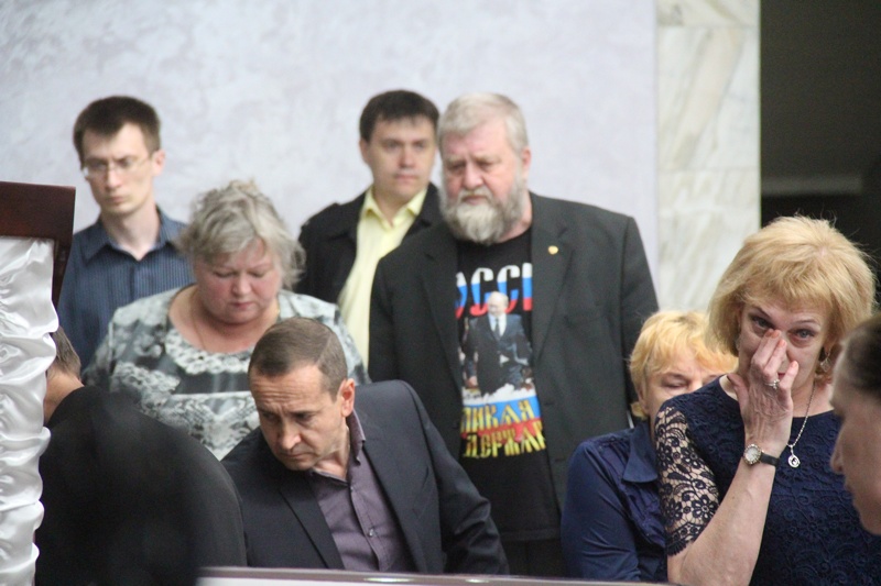 В зале звучит тихая музыка. Многие пришедшие не могут сдержать слез. Панихида обошлась без речей. Завтра тело Олега Грищенко предадут земле.