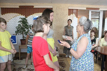 Пожилые люди от души угощали детей сладостями, а одна из проживающих дома-интерната подарила девочкам украшения, которые юные модницы сразу надели на себя. Теплые объятия на прощание и ставший уже привычным вопрос детей: «Когда можно приехать к вам снова?» А хозяева всё не хотели отпускать и дружно повторяли: «Приезжайте, когда захотите! Здесь всегда вам рады и всегда ждут!»