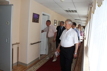 В первом корпусе учреждения гости пожелали в первую очередь посетить жилые комнаты, их интересовало, как живут здесь те, чьи имена прославляют стенды Аллеи Славы. Делегаты остались довольны условиями проживания ветеранов, комнаты которых оказались просторными и необыкновенно уютными. Директор уверил, что здесь у каждого проживающего есть все для достойной и долгой жизни. Еще раз убедиться в этом гости смогли, посетив медицинское отделение и физиокабинет, оснащенные по последнему слову медицинской техники. Отделение реабилитации удивляло гостей фитобаром с богатым ассортиментов полезных чаев и кислородными коктейлями.