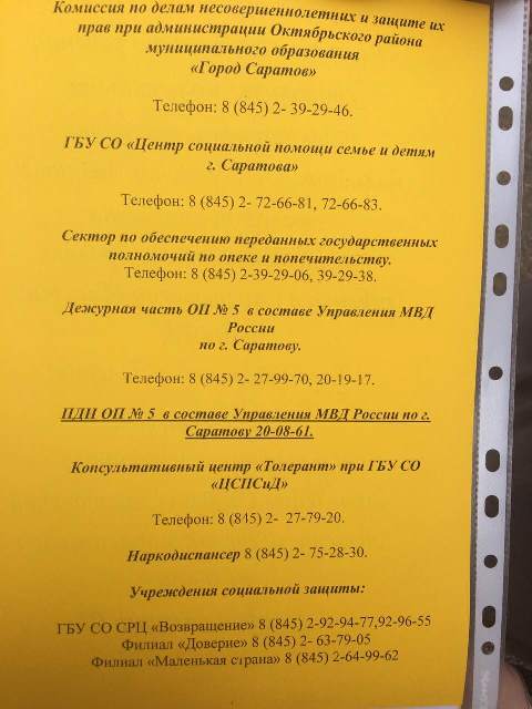 Также, в завершении встречи специалист отдела по обеспечению деятельности комиссий по делам несовершеннолетних и защите их прав при администрации района раздала всем присутствующим памятки, где указаны телефоны социальной помощи семьям и детям.