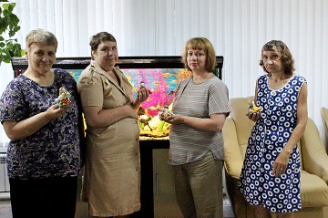 Первую половину дня, когда солнце еще не так активно, проживающие дома-интерната проводят на открытой территории, но в послеобеденные часы так приятно находится в прохладе кондиционеров и заняться полезным делом. Девушки решили изготовить куклы-мотанки. Такая кукла – не просто игрушка и симпатичный сувенир, это еще и оберег, своего рода энергетический защитник от всех неприятностей, бед, болезней, сглаза и порчи. Считается, что в процессе мотания нитей энергетические вихри с каждым витком наполняют будущую куклу магическим потенциалом, что облегчает человеку путь развития, восхождения, познания самого себя. Верить или не верить в чудесные свойства куколки – это дело лично каждого, но местные мастерицы после работы выглядели по-настоящему счастливыми и одухотворенными.