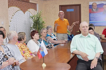 Проживающие дома-интерната вспомнили историю возникновения российского триколора и отследили его судьбу со всеми перипетиями, взлетами и падениями. Собравшиеся с удовольствием делились друг с другом своими мыслями и знаниями, обсуждая философскую и нравственную символику, скрытую в цветах великого знамени. Пожилые люди отметили, что хотя они родились и выросли под красным стягом, но флаг России значит для них очень много. Многие признались, что за последние несколько лет стали по-настоящему гордится страной, в которой живут и русским флагом, получили уверенность в светлом будущем для своих детей и внуков.