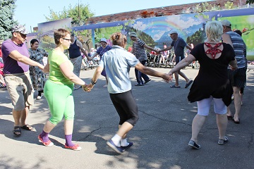 Именно на этой позитивной волне началось основное праздничное действо. Зрителям и артистам было предложено совершить виртуальное путешествие во времени и пространстве. «Паровоз времени» провез участников по станциям: Историческая, Песенная, Плясовая, Спортивная, Игровая. Станция Историческая позволила больше узнать об увлекательном прошлом Энгельса. Остановка на станции Песенная дала возможность даже инвалидам-колясочникам участвовать в концерте, подпевая слова любимых песен. Остановка на Танцевальной зажгла веселой кадрилью и закружила в динамичном хороводе. На Спортивной станции две команды участников соревновались между собой в быстроте и ловкости. На станции Игровой и зрителей и артисты, забыв обо всех проблемах и недугах, оказались вовлеченными в действие программы, хохотали и аплодировали от души.