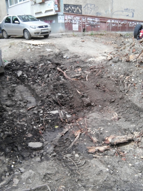 Наш двор, благодаря усилиям неравнодушных жильцов дома, попал в программу благоустройства в 2017 году. Мы очень ждали этого, очень надеялись на то, что условия нашей жизни изменятся в лучшую сторону. Действительно, месяц назад во двор завезли щебень, спилили старые деревья, начали устанавливать бордюрный камень и копать землю. Однако на этом все и закончилось.