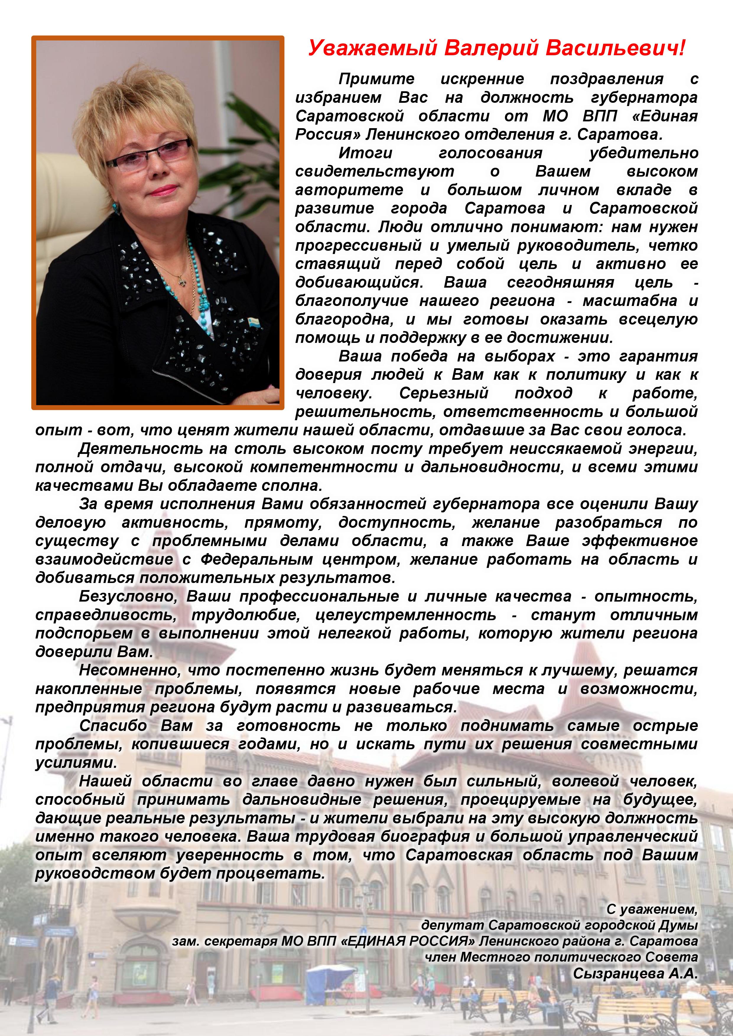 Александра Сызранцева: Итоги голосования убедительно свидетельствуют о высоком авторитете Валерия Васильевича