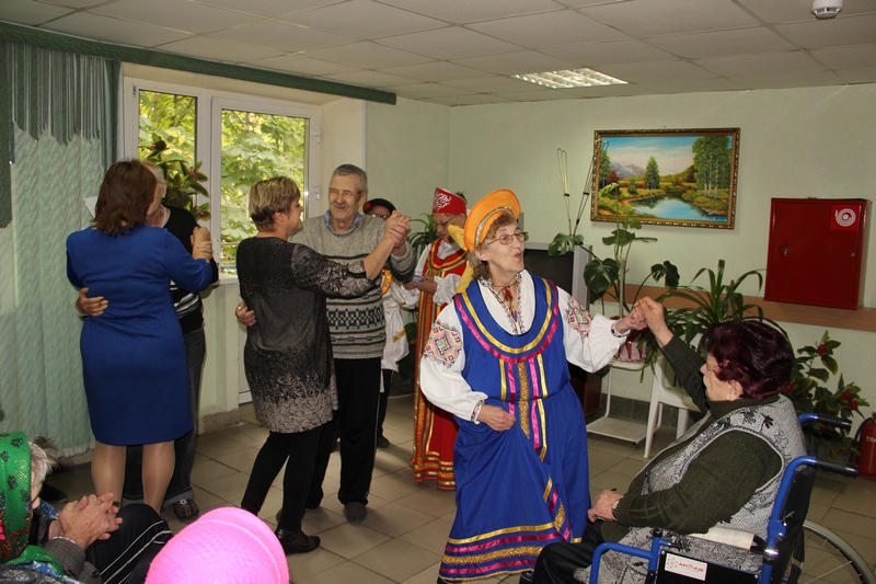 Жители геронтологического отделения и сотрудники поздравили жителей отделений милосердия с наступающим праздником. Активисты учреждения показали присутствующим шуточную сценку «Нам года - не беда», рассказали об успехах и достижения пожилых людей в различных сферах жизнедеятельности и предложили зрителям показать на что способны они. Жители учреждения пели весёлые народные песни, танцевали, читали стихи. Мероприятие прошо в теплой дружеской атмосфере и оставило множество радостных впечатлений как у зрителей, так и у выступающих участников акции.