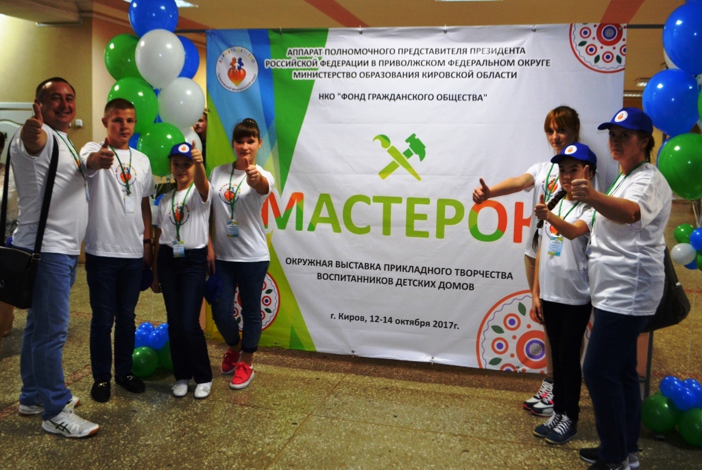12 октября 2017 года на базе «Дворца творчества – Мемориал» г.Кирова состоялось торжественное открытие выставки прикладного творчества воспитанников детских домов «МастерОК». Выставка организована в рамках общественно значимого проекта поддержки детских домов и социальной адаптации детей, оставшихся без попечения родителей, «ВЕРНУТЬ ДЕТСТВО», реализуемого в Приволжском федеральном округе под патронатом полномочного представителя Президента РФ в ПФО Михаила Бабича.
