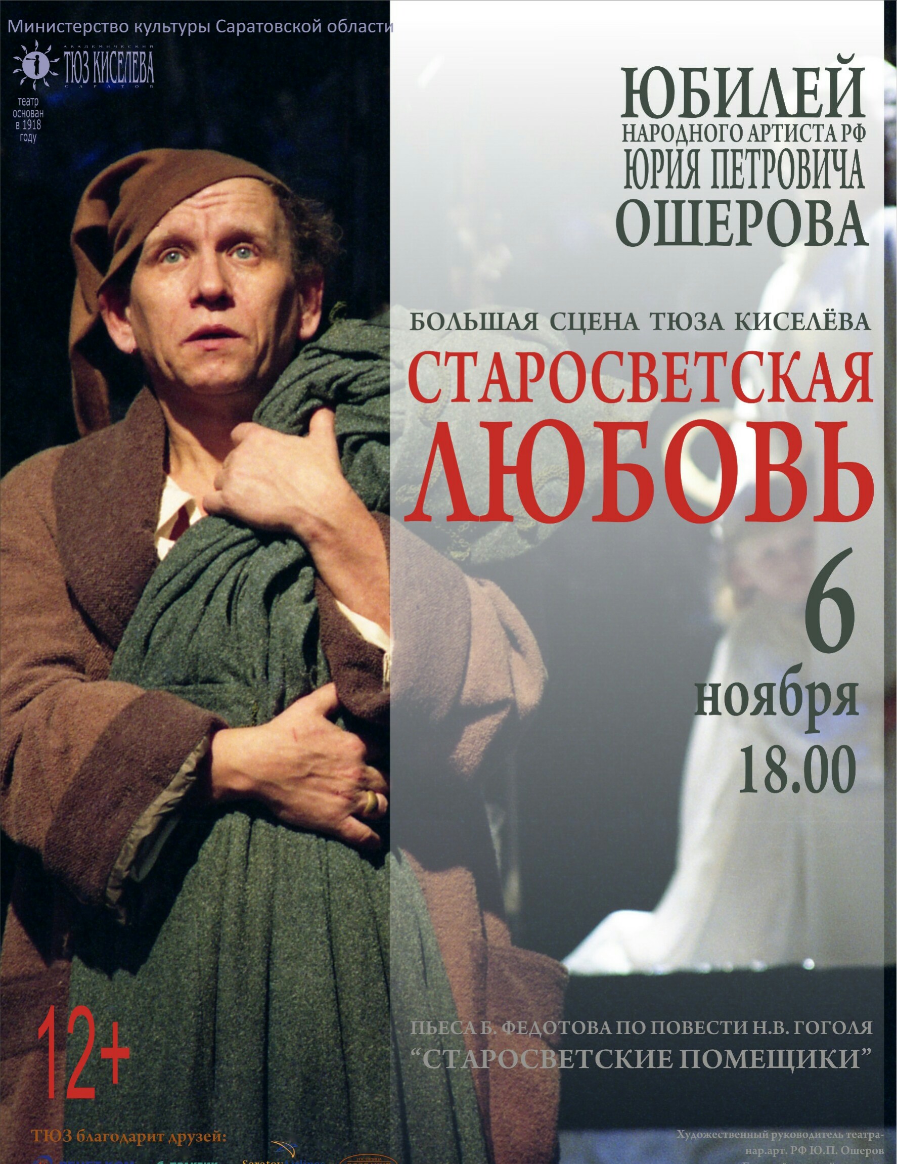 Показ 6 ноября будет особенным. В этот день ТЮЗ Киселёва будет отмечать юбилей художественного руководителя театра, народного артиста России Юрия Ошерова, который играет в спектакле главную роль в дуэте с народной артисткой России Светланой Лаврентьевой. В созданных актёрами образах столько душевной теплоты, искренности и глубокой жизненной правды, что, раз посмотрев этот спектакль, уже сложно будет представить себе других Афанасия Ивановича и Пульхерию Ивановну. После окончания спектакля запланирован небольшой сюрприз для юбиляра. Приглашаем зрителей присоединиться к поздравлениям!