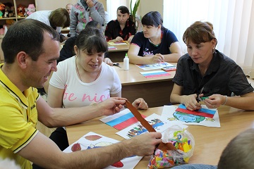 Предпраздничные дни жителей дома-интерната были насыщены яркими событиями. В первый корпус, где проживают в основном пожилые граждане, приезжали школьники. Ребята увлеченно рассказывали об истории праздника, читали стихи, и даже разыграли небольшое театрализованное представление. На следующий день проживающих порадовали концертом три талантливых женщины – авторы и исполнители песен Надежда Апицина, Евгения Большакова и Ирина Шастун. Они исполнили тематические музыкальные композиции о Родине и духовности, покорили сердца зрителей трогательными стихами и лиричной музыкой. Подопечные третьего корпуса дома-интерната проявили свои таланты, готовя тематические творческие работы. Результатом их трудов стала выставка, на которой представлены рисунки в различных техниках, аппликации и коллажи.