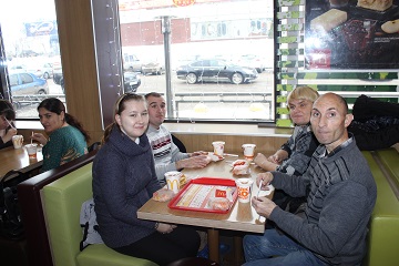 28 ноября для молодых инвалидов, живущих в Энгельсском доме-интернате, была подготовлена особая программа. Они отправились в ресторан быстрого питания «Макдоналдс». Трудно передать словами восторг ребят от этого мероприятия, ведь многие из них ни разу не обедали вне стен социальных учреждений. Внимание приветливого персонала «Макдоналдса», интересная лекция об истории учреждения, теплая дружеская обстановка, приятная музыка, необычная еда, - все это не могло оставить равнодушными отзывчивые сердца молодежи дома-интерната.