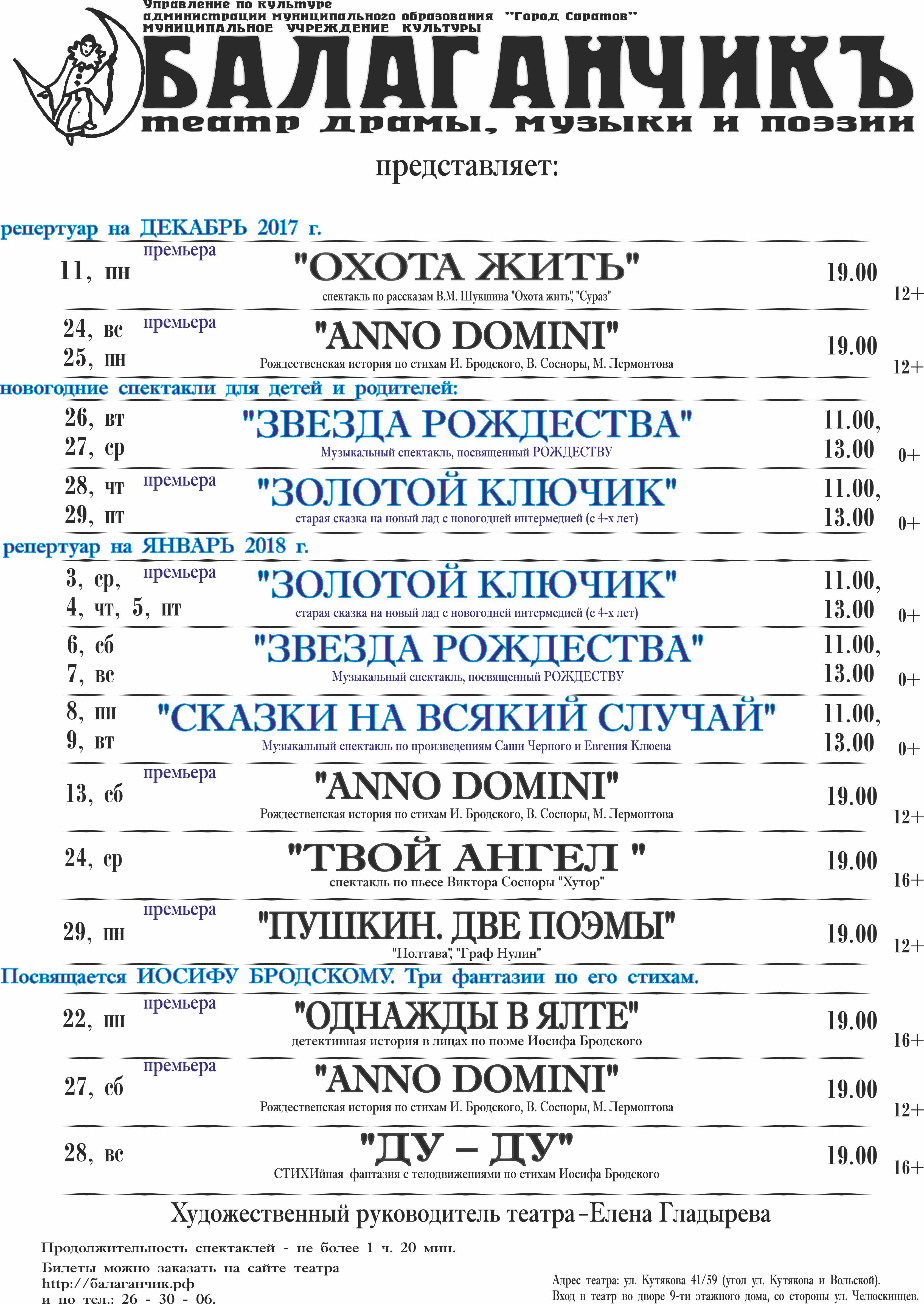 В декабре-январе "Балаганчикъ" покажет 8 премьерных спектаклей