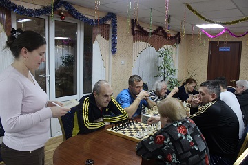 А дальше, уже отдохнувшие, жильцы дома-интерна приступили к интеллектуальным развлечениям. Сотрудники МБУ «Спортивно-технический центр» провели для жильцов и сотрудников учреждения шахматный и теннисный турнир. Здесь на равных состязались два поколения жильцов и молодые люди, проходящие альтернативную гражданскую службу, и призовые места заняли представители этих трех категорий. Вручение медалей, грамот и сладких подарков завершило день состязаний. Интеллектуальные игры в третьем корпусе проходили в рамках «Вечера загадок» и рождественских посиделок «Свет новогоднего чуда».