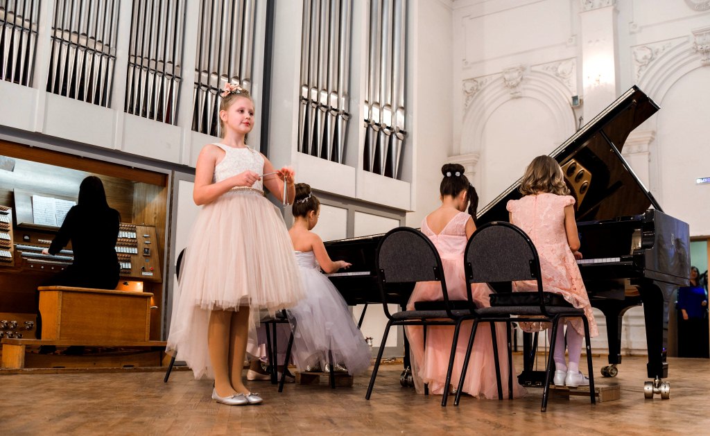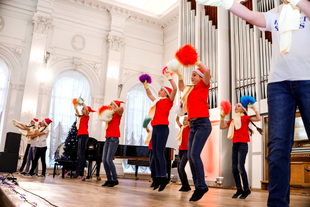 Открыл концерт виртуозный квартет юных пианисток Детской музыкальной школы № 6 города Саратова, исполнивших в 8 рук на двух роялях в сопровождении органа «Фантазию на новогодние песни».