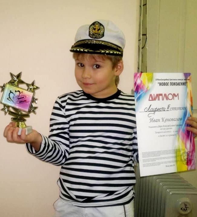 Учащийся 1 класса ДШИ № 8 Коновалов Иван года завоевал в г. Москве 3 премию на Международном конкурсе «Новое поколение» в возрастной категории 6-8 лет. Авторитетное жюри составили преподаватель академического вокала Государственного академического театра России, руководитель Образцового вокального коллектива «Маленький секрет» Т.Н. Черняева и Президент Международного молодежного Арт-комитета «Новое поколение» Т.Д. Скрипка. Подготовили его к конкурсу преподаватель В.А. Чурилова и хореограф Е.О. Урманова.