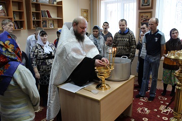Православные жильцы всех трех корпусов учреждения получили возможность присутствовать на службах и наблюдать ритуалы освящения воды, которые проходили в Домовом Храме великомученика и Целителя Пантелеимона главного корпуса и в Молельной комнате третьего корпуса. Возглавляли литургии Священник Элизбар и Священник Александр Ермохин. Святой воды хватило всем желающим, ее получили и проживающие и даже сотрудники.