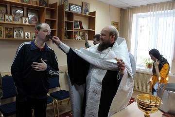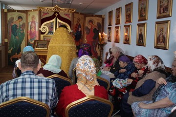 После службы Отец Элизбар обошел все жилые отделения, освятил комнаты и пообщался со своими прихожанами.