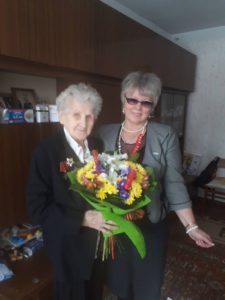 Анна Ивановна встретила гостей со счастливой улыбкой и ласковым взглядом. Александра Сызранцева вручила ветерану букет цветов, корзину с фруктами и памятные подарки.