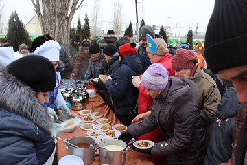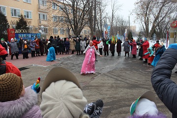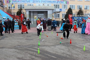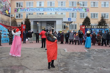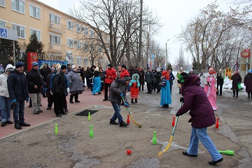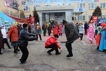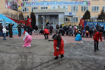 Жильцы всех трех корпусов учреждения собрались на открытой территории центрального корпуса. Масленичный четверг выдался морозным, но собравшимся мерзнуть не пришлось. Они с азартом, водили хороводы со скоморохами, соревновались в шуточных конкурсах на ловкость и сноровку.