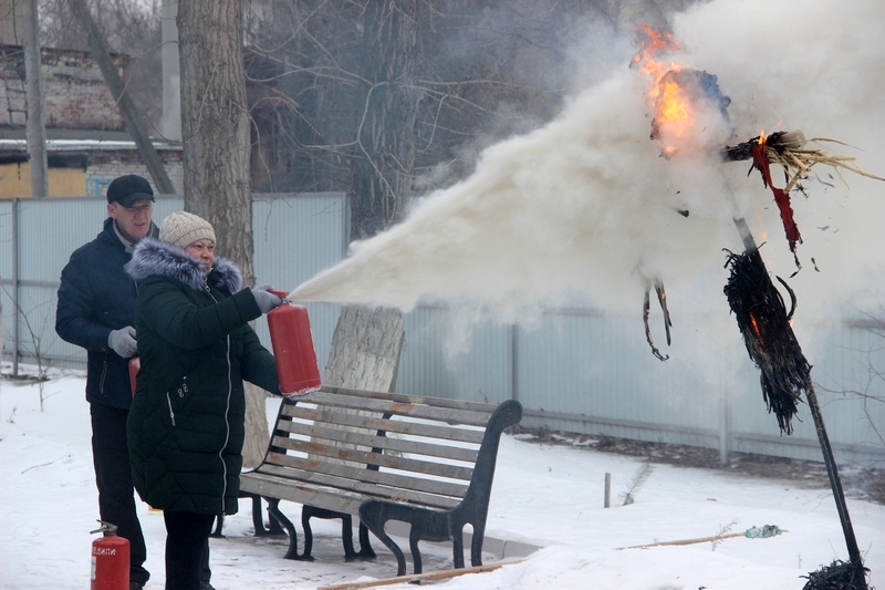 Затем, все присутствующие сотрудники поочередно тушили, специально подготовленный локальный пожар, на практике отрабатывая навыки пожаротушения огнетушителем.