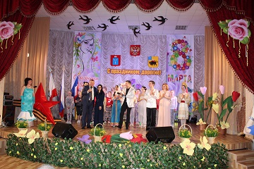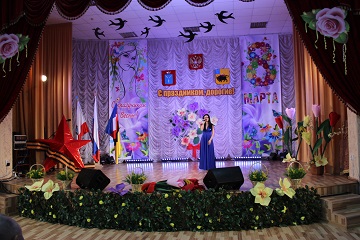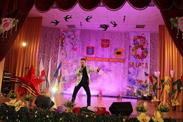 На протяжении всего мероприятия со сцены звучали поздравления в адрес прекрасных женщин.