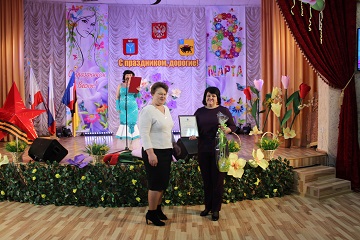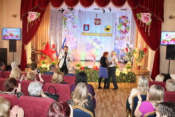 От министра социального развития области Ларисы Викторовны Колязиной, поздравила всех присутствующих Наталия Геннадиевна Гурьева - начальник отдела стационарных учреждений. Она поблагодарила прекрасных женщин за их подчас нелегкий труд, пожелала здоровья и семейного благополучия.
