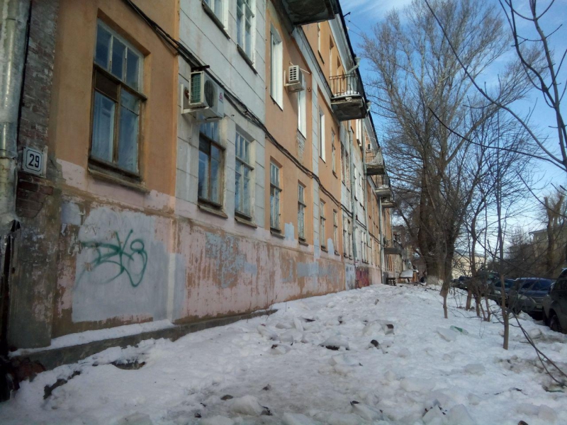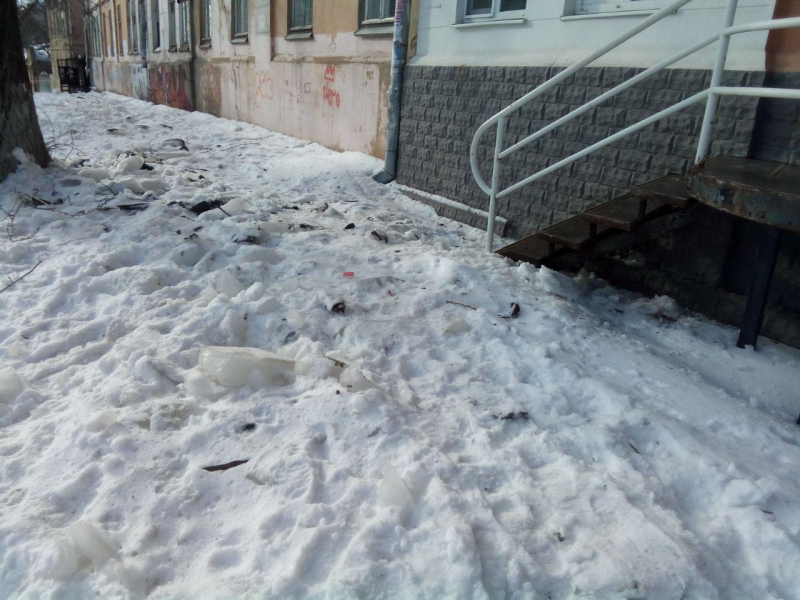 Саратовец пожаловался, что на днях у домов №27, 29 и 31 решили впервые за зимний период почистить крышу, но снег и лед сбросили на тротуар и не стали убирать.