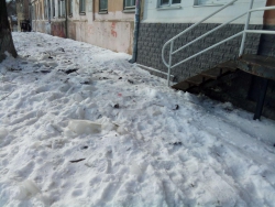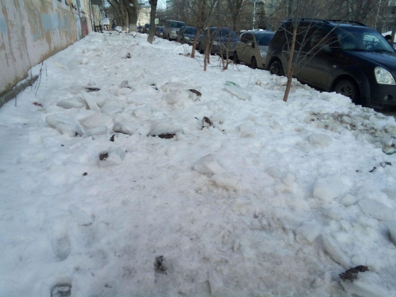 На улице Соляной в Волжском районе Саратова после очистки крыш жилых домов тротуар завалили глыбами льда. Об этом «Четвертой Власти» рассказал местный житель Александр.