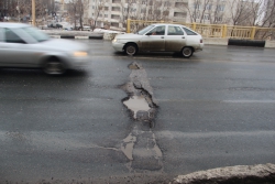 В Саратове найдется сразу несколько мостов, которые с приходом весны были завоеваны выбоинами, вокруг которых водители выписывают лихую змейку, чтобы не угодить в яму. Но все они меркнут на фоне путепровода в Заводском районе Саратова на Ново-Астраханском шоссе. Это мост проходит над железной дорогой между Крымской и Ясельной улицами.