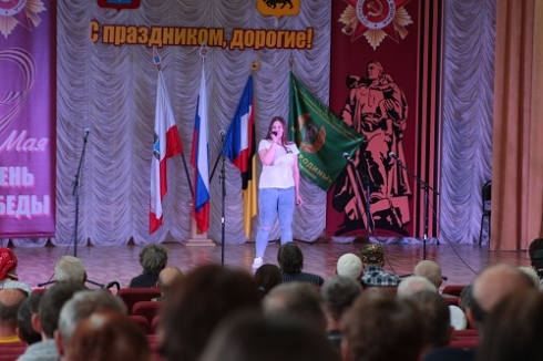 Талантливая вокалистка Анастасия Карева выступила с сольной программой «Мы помним…». Девушка исполнила популярные песни военных лет, именно те, которые когда-то вдохновляли солдат на подвиги, помогли выстоять и победить в этой жестокой войне.