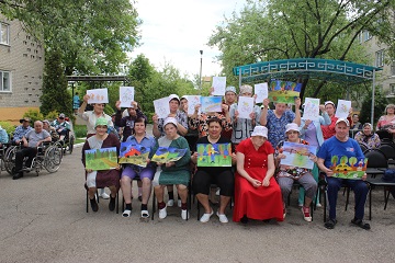 Конечно, проживающие тоже не могли остаться в стороне. Самые творческие и активные к этому дню тщательно подготовились заранее: рисовали тематические рисунки, готовили программу веселой эстафеты.
