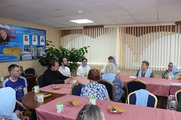 После кинопросмотра, за чашкой чая, началось живое обсуждение увиденного. Чаепитие помогло создать атмосферу непринужденной беседы. Пожилые люди и молодые волонтеры обсуждали сюжет просмотренного фильма, отмечали моменты, которые наиболее запомнились зрителям. Проживающие дома-интерната сделали вывод, что получили совершенно новый взгляд на казалось бы известный всем христианский праздник. Волонтеры также рассказали о новинках духовной литературы по тематике фильма.
