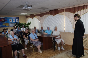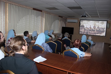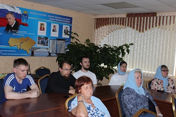 На предварительном этапе проекта вместительный читальный зал дома-интерната был переоборудован в уютный кинозал. Здесь смогли с комфортом разместиться хозяева учреждения и их гости - волонтеры - члены православного молодежного общества «Покров», со своими наставниками - иереем Свято-Троицкого кафедрального собора Аркадием Махсумовым и его заместителем Андреем Касимовым. Так как открытие кинозала произошло в день великого христианского праздника - Вознесения Господня (17 мая), гости предложили для первой демонстрации документально-исследовательский фильм «Вознесение». Волонтеры сделали краткое вступление – рассказали присутствующим об истории создания этого фильма, о его режиссере и своем опыте показа этого фильма разным категориям населения. Посмотрев кинофильм, участники кинолектория узнали о событии новозаветной истории - восшествии Иисуса Христа во плоти на небо, а также об установленном в память этого события переходящем христианском празднике.