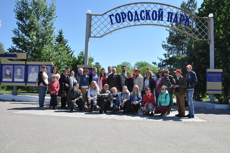 Знакомство с Аткарским районом началось с центральной части Аткарска. Гостям показали городской парк, заложенный в 1887 году, краеведческий музей, здание железнодорожного вокзала, отреставрированного в минувшем году. В этом году в парке сделали новые дорожки, поставили уличные фонари, на отдельной клумбе высадили аткарские розы. Среди них получивший приз на выставке в ВДНХ сорт черной бархатной розы.