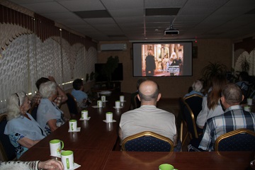 После молитвы, отец Аркадий, предложил сразу приступить к просмотру фильма, а обсуждение и беседу оставить на завершающую часть встречи. Для просмотра был выбран фильм «Казанский собор. Православные храмы Санкт-Петербурга».