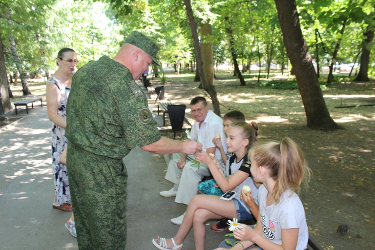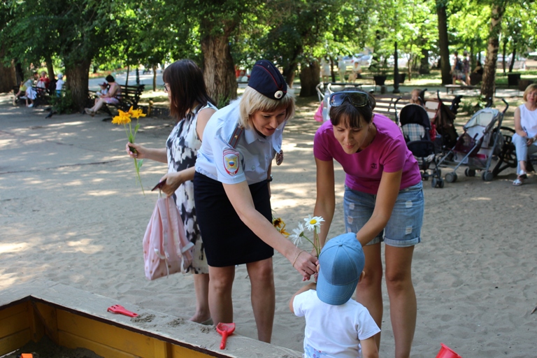 Вооружившись брошюрками семейного кодекса и символом праздника – ромашками, сотрудники подразделения по делам несовершеннолетних УМВД России по городу Саратову и представители общественного совета при городском управлении отправились в парк Липки. Отдыхающие были приятно удивлены встрече с сотрудниками полиции. Малыши, играющие в песочнице, вслед за взрослыми потянулись за цветами.