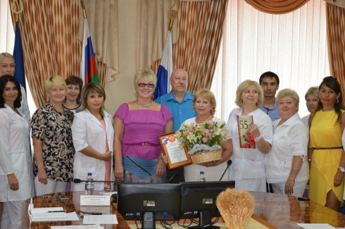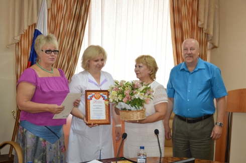 В заключение совещания состоялось поздравление с 55-летним юбилеем работника отдела лабораторных животных Кукуевой С.И. Руководство и представители коллектива тепло поздравили её с этой знаменательной датой. Светлане Ивановне была вручена Почетная грамота за многолетний добросовестный труд и цветы.