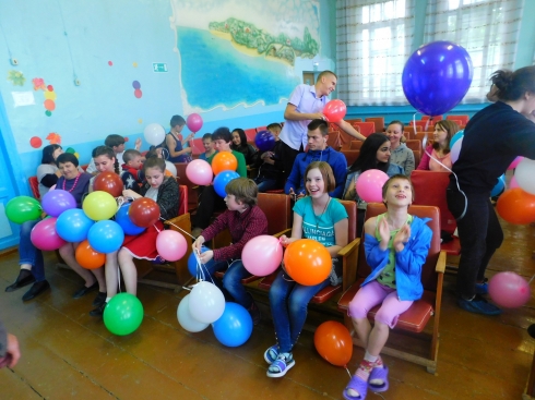 Ещё ни в одном детском доме нас не кормили три раза за день, да ещё и так вкусно, что многие выстраивались в очередь за добавкой! После первой трапезы мы, наладив все свои аппараты, начали угощать ребятишек кислородным коктейлем и сладкой ватой, параллельно с этим отглаживая костюмы, надувая шарики, готовились к первому спектаклю. Так, один за другим мы отыграли три наших спектакля. Первым был комедийный спектакль «Как царя женили» о молодом, но таком ленивом царе, который пытался найти свою любовь. Второй – это новая версия знаменитой сказки «Золушка», после которой хочется верить в чудеса и в то, что все мечты обязательно сбудутся. Третий спектакль – можно сказать «легендарный» спектакль «Тисту – мальчик с волшебными пальцами», который мы привозим в Хвалынск уже не первый раз. Это история о необыкновенно добром мальчике и его подруге – гимнастке Тони, которые помогаю всем, кто нуждается в помощи. Ну и завершили мы нашу программу вокально-хоровой миниатюрой с элементами жестовой песни «Слон и Бегемот». Это детская песня (философская притча для взрослых), где рассказывается о «голубой» мечте Бегемота облететь на самолете весь мир. В конце произведения его друг Слоненок дарит Бегемоту игрушку-шар в виде самолета.
