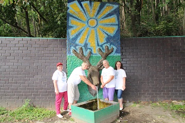 Следующая остановка была в селе Царевщина, где проживающие дома-интерната приступили к осмотру местных достопримечательностей. Невероятно, но навстречу путешественникам вышла местная жительница – баба Валя, которая с удовольствием рассказала историю родного села и провела экскурсию.