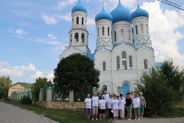 Неожиданно перед краеведами на фоне голубого неба возник Покровский храм села Балтай с необычными лазурными куполами. Глядя на него, возникала иллюзия, что храм настолько легкий и невесомый, что парит в воздухе.