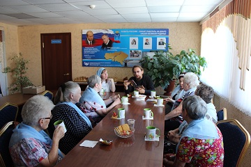 По уже сложившейся доброй традиции к просмотру фильма присоединились православные волонтеры молодежного общества «Покров» с помощником руководителя движения Андреем Касимовым. Два поколения зрителей уже успели хорошо узнать друг друга во время предыдущих встреч, и тем интереснее стал проходить каждый последующий кинопоказ. На этот раз пожилые люди и молодежь активно обсуждали заданную тему и делились своими впечатлениями от увиденного. Затронутая в фильме тема духовно-нравственного преображения человека вызвала бурные дискуссии. За чашкой ароматного чая участники встречи вели интересные дискуссии о том, как принятие православия смогло повлиять на развитие нашего государства и русской культуры.