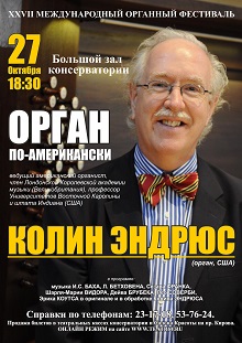27 октября в программе "Орган по-американски" состоится выступление выдающегося американсккого органиста, профессора университетов Восточной Каролины и штата Индиана Колина ЭНДРЮСА (США).