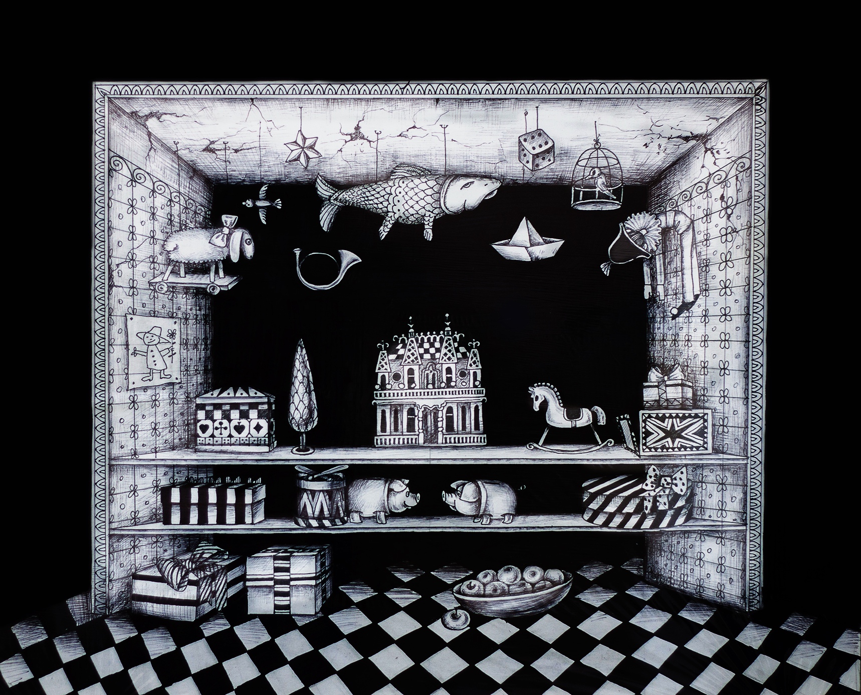 Художник Татьяна Старикова создаёт на сцене пространство старинной комнаты, заставленной диковинными сундуками, клетками с заводными птицами, шкатулками и коробками для игрушек, которые готовы в любой момент раскрыться и перенести нас в сказку. Именно игрушки становятся героями этой истории – свиньи-копилки, механический соловей, пьеро и даже злой тролль, скрывающийся в табакерке... Где, как не в театре кукол, возможно в полной мере воплотить этот волшебный вещный андерсеновский мир, который объясняет нам всё самое главное о любви?