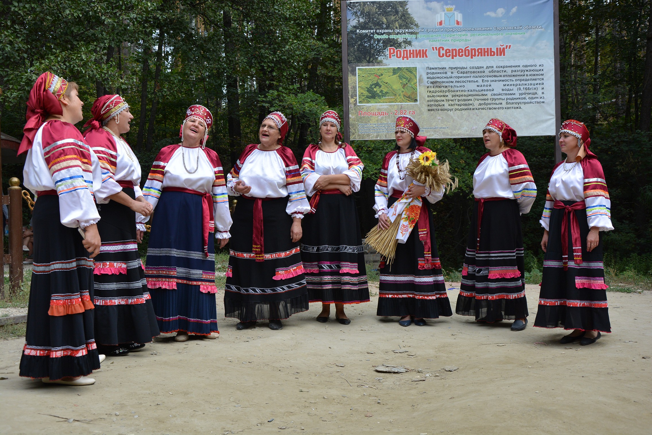 На роднике «Серебряный», который находится на особо охраняемой природной территории регионального значения, участников пресс-тура встретил творческий коллектив «Рябина». Он показал обрядовые зарисовки праздника «Осенины». В этот день благодарят лето за урожай и приветствуют наступившую осень. Рядом с родником находится гостевой дом для туристов «Серебряный бор», где можно остановиться на ночлег.