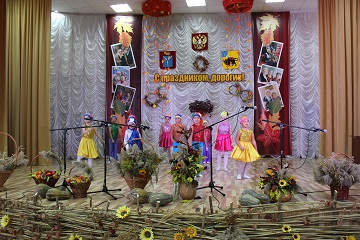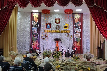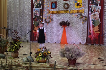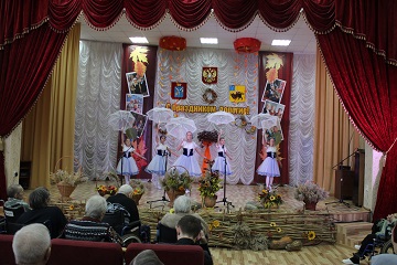 Кроме творческих выступлений, гости не скупились на слова поздравлений. Возраст хозяев этого радушного учреждения артисты справедливо назвали золотой осенью жизни. И атмосфера в концертном зале учреждения красочно иллюстрировала это высказывание. Сцену украсили осенние композиции самых теплых солнечных оттенков. Щедрость и изобилие золотого сезона олицетворяли икебаны из хлебных колосьев и осенних цветов.