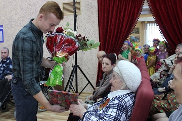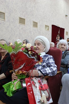 Так сложилось, что одна из зрительниц – ветеран Великой Отечественной войны Анна Александровна Жданова – отмечала в этот день свой 96-й День рождения. Конечно, ей в этот день были сказаны особые слова. От лица администрации учреждения героическая женщина получила ценные подарки и самые теплые пожелания здоровья и душевного благополучия.