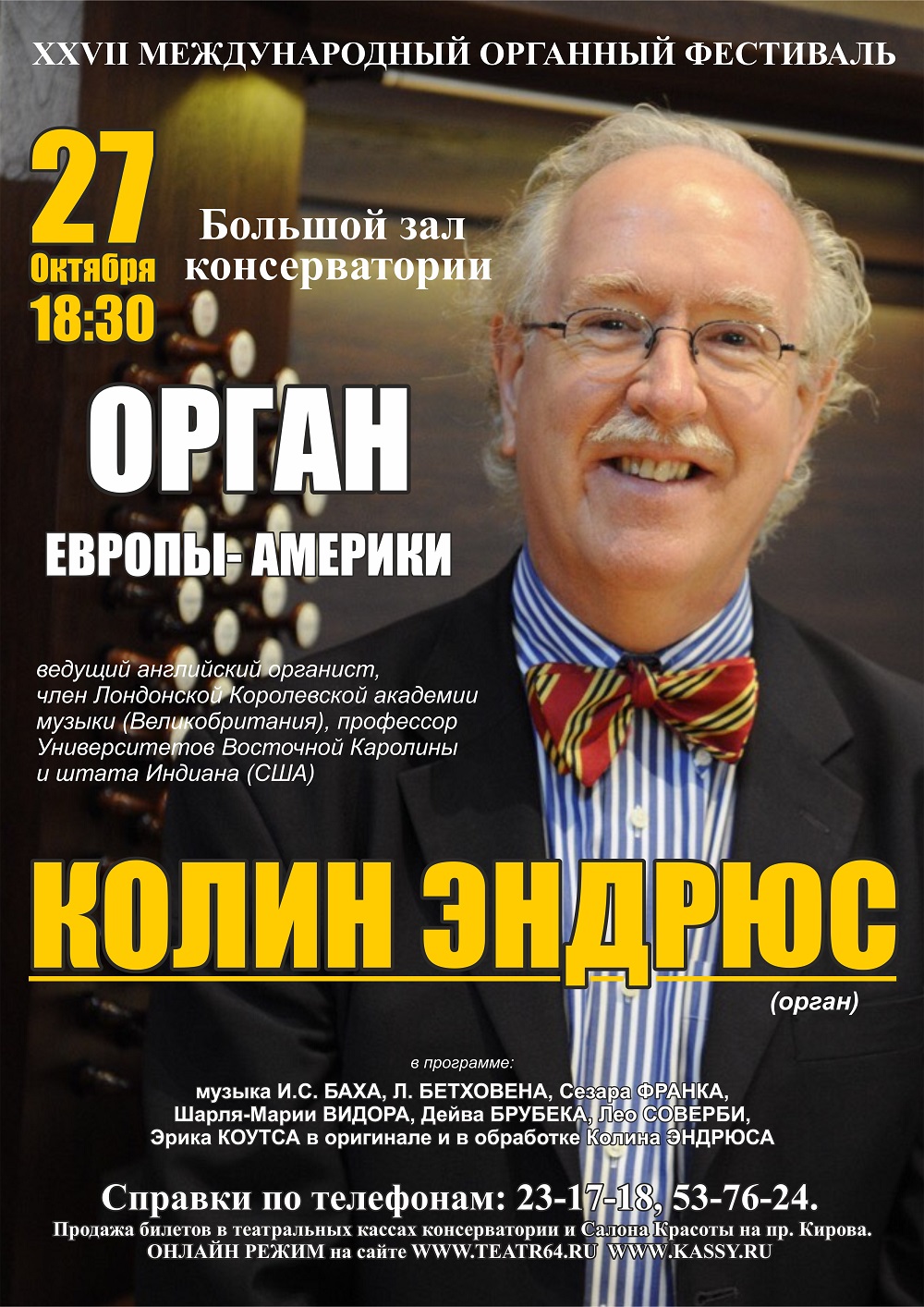 27 октября на 27-м Международном органном фестивале в программе «ОРГАН ЕВРОПЫ-АМЕРИКИ» выступит выдающийся английский органист Колин Эндрюс.