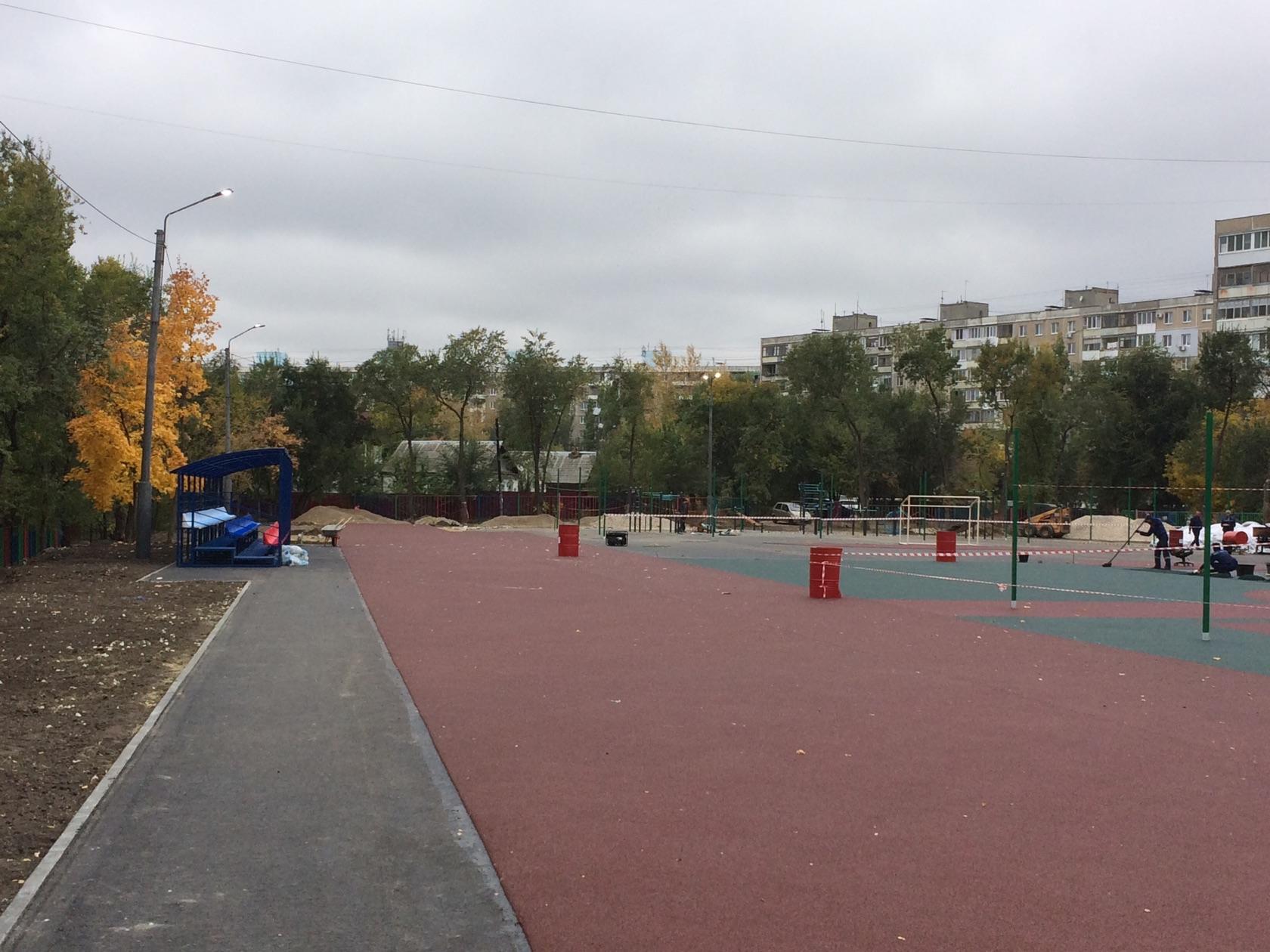 Сейчас на подготовленной территории у гимназии №5 установлены спортивные элементы и трибуны, производится укладка покрытия. Здесь предусмотрено футбольное поле, площадка для занятий баскетболом и волейболом, беговые дорожки, площадка для воркаута и территория для сдачи нормативов ГТО, а также теннисный корт.