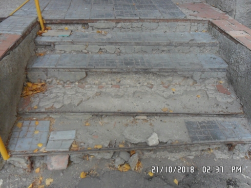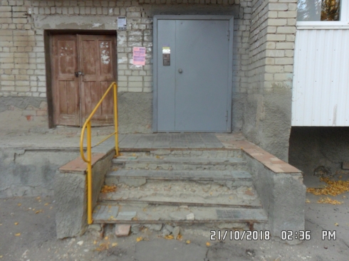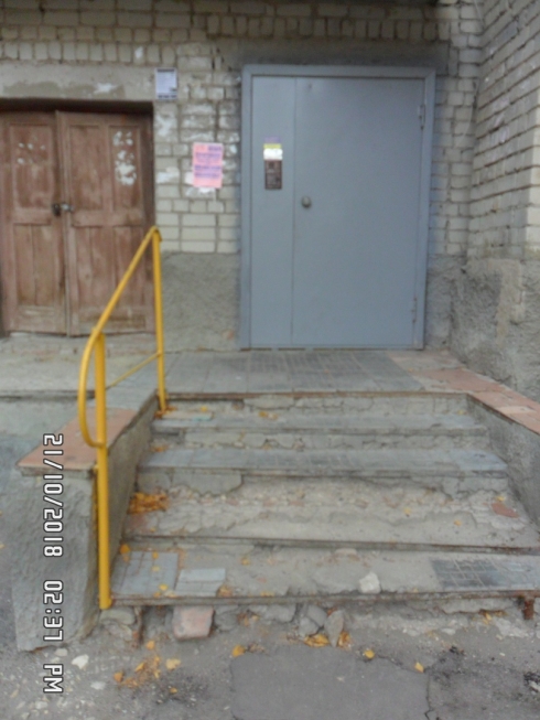 Здравствуйте! Прошу обратить внимание на проблему разрушения ступенек для крыльца. Деформация крыльца начала происходить летом 2018 года и продолжается. В связи с ухудшениями погодных условий (дождь, гололед, снег) станет опасно спускаться. Спасибо!!!!!