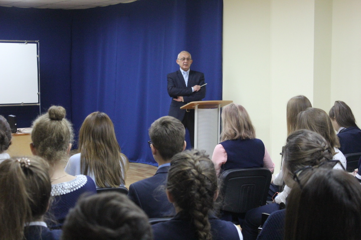 Разговор о профессии врача с учащимися профильных классов, где многие мечтают в перспективе о медицинском образовании, происходит уже не впервые. Вот и на этот раз лес поднятых рук ребят стал ответом на вопрос: кто собирается после окончания школы поступать в медицинский университет? С будущими коллегами о прошлом и настоящем одной из самых благородных профессий говорил хирург, заслуженный врач РФ, кандидат медицинских наук Владимир Павлиашвили. Собравшиеся обсудили самые известные и даже революционные открытия в сфере здравоохранения, нюансы ежедневной работы врача, взаимоотношения с пациентами и многие другие темы, по которым у школьников пока есть только теоретические знания. Ребята высказывали личное мнение о профессии, задавали свои вопросы и отвечали на вопросы специалиста. В частности, их интересовали перспективы борьбы с онкологическими заболеваниями, проблема увеличения продолжительности жизни и даже вопросы возможного бессмертия человека. В результате дискуссия вышла за пределы отведенного времени, поэтому и было решено в перспективе повторить понравившуюся встречу.