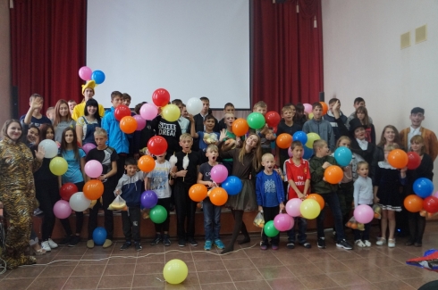 Концертную программу мы начали со знакомства с воспитанниками: поиграли в игры на знакомство, потанцевали и повеселились, а самые активные ребята получили сладкие призы!